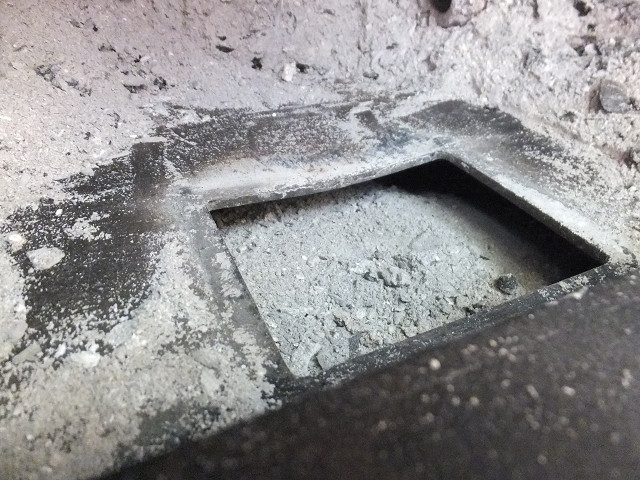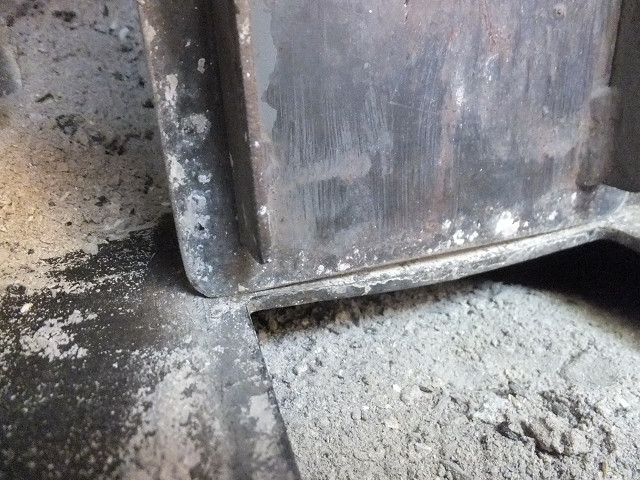 薪ストーブの炉底が熱で歪んでしまって、灰受け室と蓋の隙間ができてしまって、空気の制御が効かなくなってしまったそうだ。