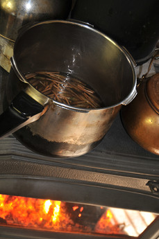 日中は暖かいけど、朝晩は冷え込むので、薪ストーブに火を入れて、その熱を活用。
