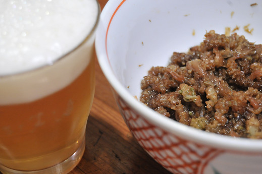 ダシに鰹節、味付けは「砂糖」「酒」「塩」の順番で適当に。数時間煮込んだら、取り出してザルで水を切って、醤油で味を調える。