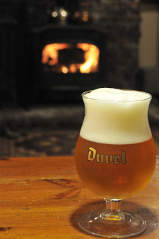 ビールを飲みながら炎を楽しむ