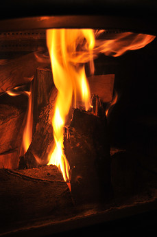 真冬のように、ずーっと薪をくべ続けると部屋の中が暑くなりすぎてしまうので、数回の薪の補充で十分だ。