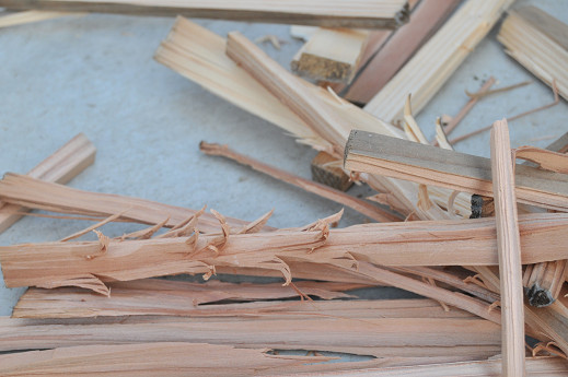 薪ストーブ、煙突の設置作業の後に、焚付作り