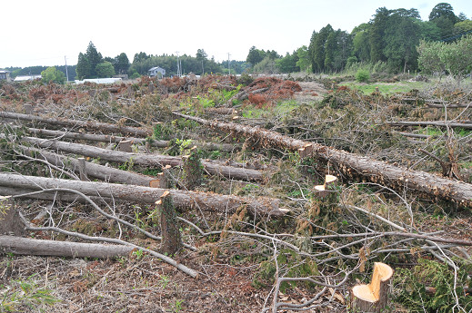 8月末を目処に太陽光発電所にするということで、倒された木の無償提供の話があった。整地工事が入る前に業者が全部撤去してしまうけど、それまでの間、ここ数ヶ月以内の間に好きな時に来れば、自分の好きなだけ持って行って良いということだ。