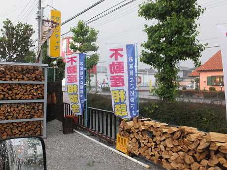 道路際のこのノボリで不動産屋さんと判るがパッと見は薪屋さんにしか見えない