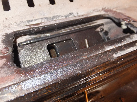 今回メンテしたヨツールF500は空気調整のレバーがスムーズに動かなくなっていた。マイナス方向に空気を絞る時に引っかかる感じがして硬くなって動かない状態だった。それが気になるので、今回は炉内清掃だけでなく、この部分もチェックしてみた。