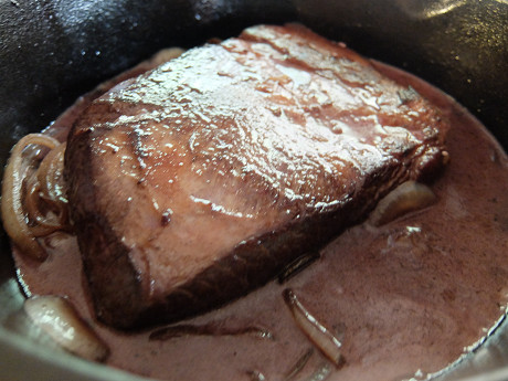 前回はダッチオーブンで蒸し焼きにしたが、それと同じ調理方法では芸がないので、今回は赤ワインで煮込むことにする。