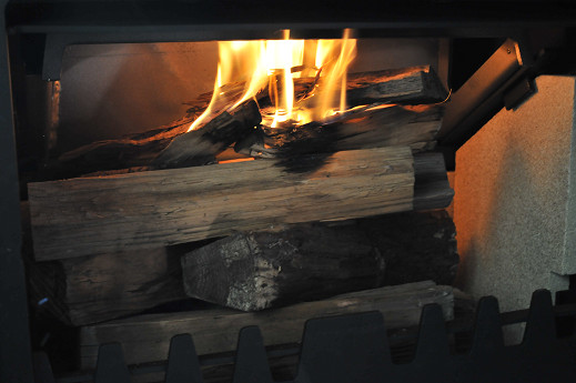 ガラス面の全く雲らないというわけではないけど、一日焚いても比較的綺麗で、ガラスを拭かなくても炎の鑑賞に邪魔になることもない。数日に一回の焚きつけ前に拭けば、事実上十分という感じだ。