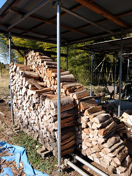 薪集めも頑張りましたねぇ。とりえあず、それだけ集めれば快適な薪ストーブライフを送ることができるは約束されたようなものです。(乾燥薪をいかに確保するか、マトモな煙突が一番大切なことなので、それらがクリアできれば安心です)