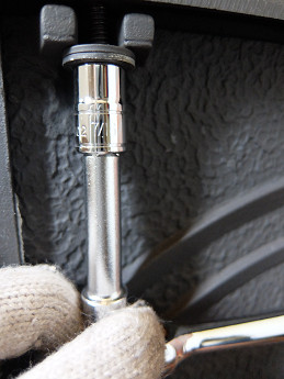 ラチェットにつないで天板のボルトを取り外す
