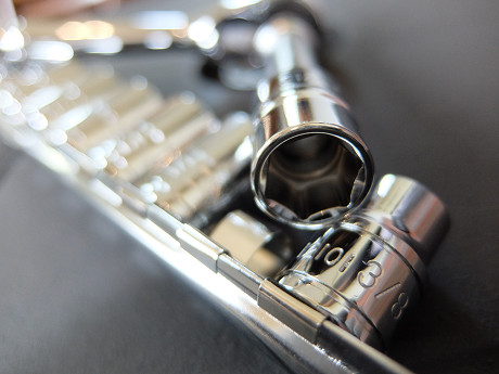 しかし、アメリカ製の薪ストーブはボルトやネジがインチの規格なので、専用工具が必要になる。簡単な工具は製品に付属しているのだけど、オモチャみたいなスパナで使い勝手が悪いし、お客さんの保管状況によって出てこないケースも多いので、ミリ規格の工具だけでなく、インチ規格の工具も持参している。