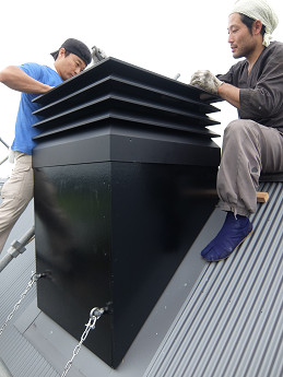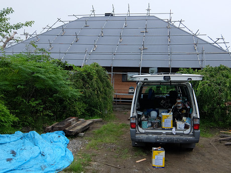 この段取りは大正解で、写真では判りにくいけど、角トップを取り付けた直後に雨が降ってきた。雨が降っても、残りの屋内作業には影響はないので、天候に邪魔されずに済んでラッキーだった。
