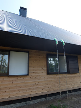 ステンレス製の鎖を屋根の上に常設する(鎖の長さは屋根の淵のところで後日切断)