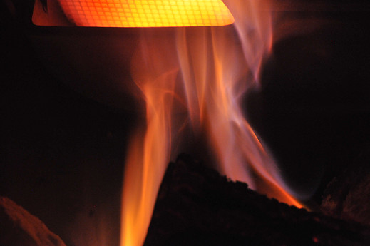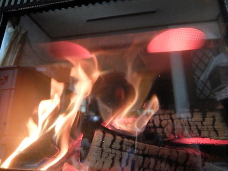 炉内の温度が上がってしまえば、安定したオーロラ炎が長時間維持される。レバーの操作でリニアに炎が反応するので、面白い。ちょっと遊んで空気を絞り過ぎても、燃え残りの未燃焼ガスを触媒で処理してくれるので、煙突からは目視確認できる煙が出ずに、無色透明のままなので、安心だ。