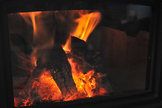 非常に綺麗なオーロラ炎が出た。空気調整も一次のみの一か所で簡単な操作だ。ガラスの煤けは同じメーカーのヨツールF400は多めだけど、最新モデルのF45は、この点について改良されていて、ほとんど煤けない高性能ぶりを垣間見ることができた。