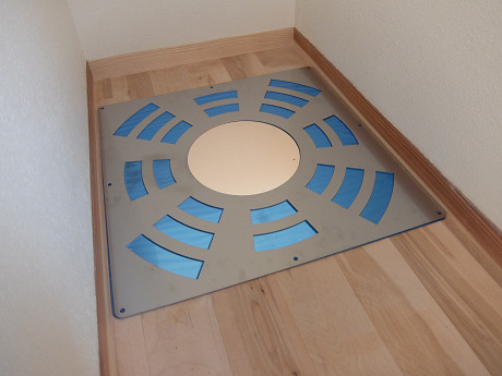炉台もすっきりと納める予定(サンプルのストーブボードを現場に持っていき施主さんに確認してもらった)