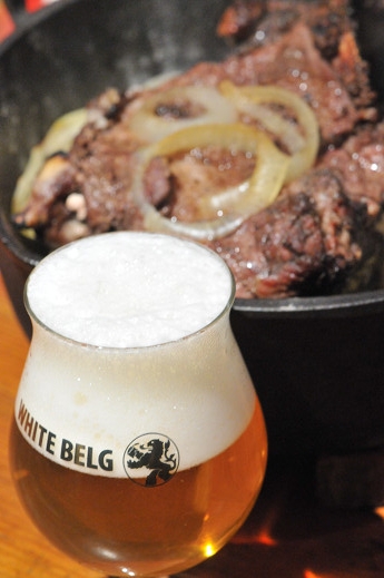 まずはダッチオーブンの蓋で肉の表面に軽く焦げ目がつくくらいに焼いて肉汁を閉じ込める
