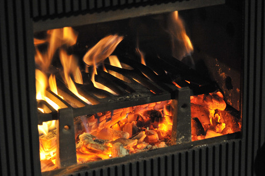 炉内を熾火で満たして調理できる状態にする