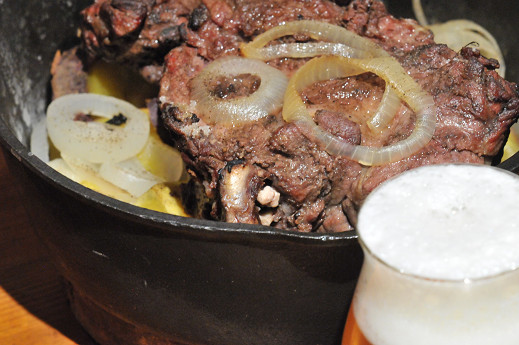 ダッチオーブンに納まりきらない巨大な肉の塊だったけれども、ひっくり返す時にも安定していて、肉が下に落ちずに安心して調理できた。