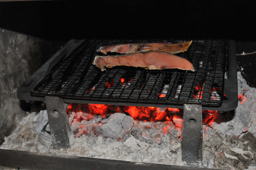 薪ストーブの炉内料理のお勧めは「魚」だ。弱めの熾火で焼くと、絶妙の焼け具合で味も絶品となる。高級料亭の炭火焼が家庭で簡単に実現できる。特別な日のピザなどのパーティ料理だけでなく、普通の毎日の食卓に乗るオカズ作りにこそ、活用して欲しい。