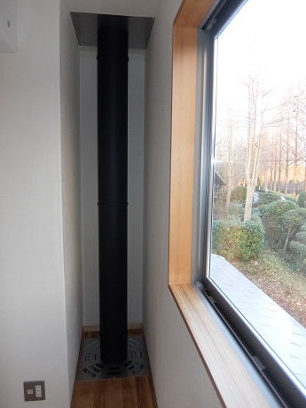 階段を登って出た二階のユーティリティスペースの一角が煙突コーナーだ