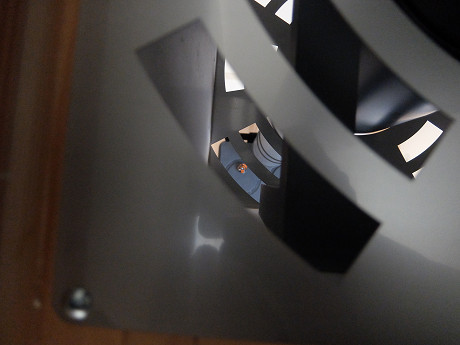 二階から一階を化粧板越しに見下ろしたところ