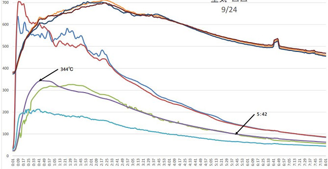 しかし、その結論で終わらせてしまっては今回の記事のテーマの「CB機と触媒機の比較」にならない。一歩進めて、仮の前提条件で「同じ乾燥具合、同じ重量の薪を、上級者が高温で理想的な状態で焚いて、CB機と触媒機の、それぞれの薪ストーブの本来の性能をフルに発揮させることができたら・・・」という場合での比較をしてみよう。