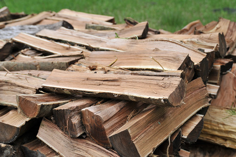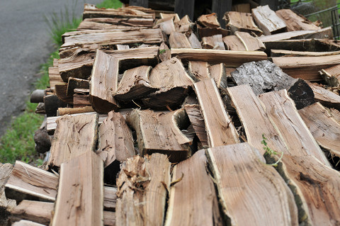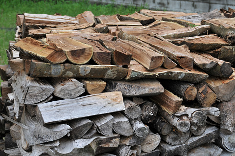 薪の乾燥についてだけど、樹皮からは蒸発しない。初心者のうちは薪棚に積む時に平らな面を下に下方が積みやすいせいか、割った面を下に向けてしまいがちだけど、割った面から蒸発していくので、それを上にした方が合理的だ。