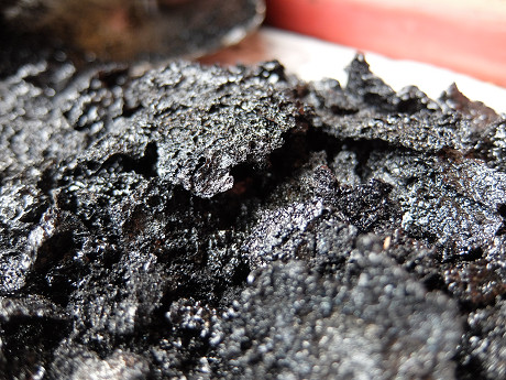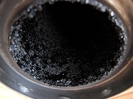 切断して取り外した、わずか20センチほどの短いシングル煙突内部だけで、こんなに煤が出てきた