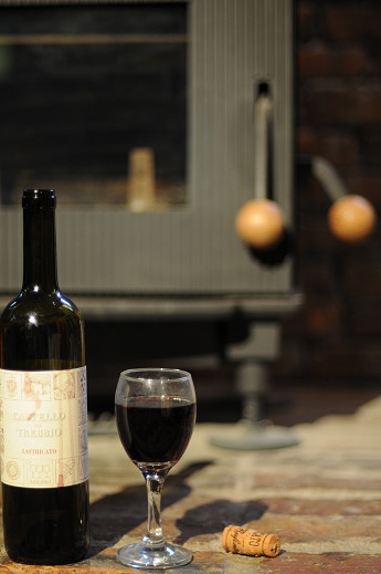 オカモト生産の薪ストーブとオカモト関連会社のナベヤトレーディング輸入のワインのコラボ