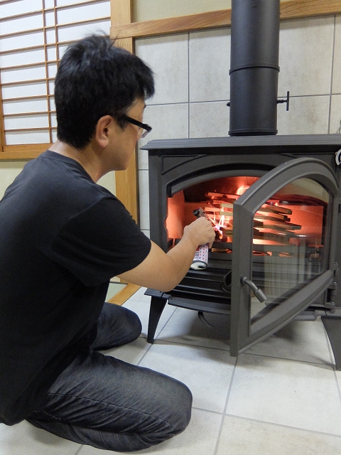 既に別の薪ストーブを使っているユーザーで、それなりの経験は積んでいたので取り扱い説明しなくても何とかなるとは思うけど、実際に空気調整するタイミングとかは機種ごとに違うので、今回導入した760CBならではの焚き方をポイントを絞ってレクチャーした。誤った使い方をして遠回りするよりも、最初から正しい使い方でスタートしてくれた方が良いからだ。
