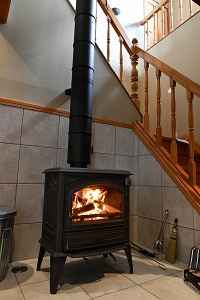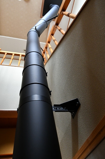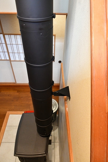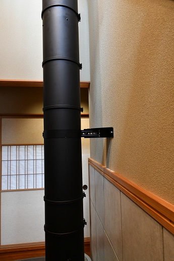 炉壁のすぐ上の木下地で煙突を支持しているので抜群の安心感だ。