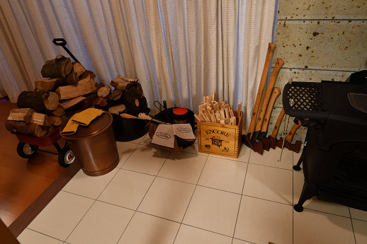 今回の滋賀県でのアンコール30周年記念モデルの設置のお客様は、事前にありがた屋さんで、グッズをバッチリ準備していた。 一通り、薪ストーブや薪作りに必要なグッズがそろっていた 設置した薪ストーブの隣に並べてみた 十分に広い炉台だけど、それでも置ききれないくらい これらのグッズをフル活用すれば快適な薪ストーブライフが過ごせるだろう これからが楽しみ