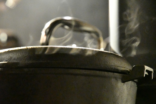 やがてダッチオーブンの蓋の隙間から水蒸気と良い匂いが出てくる