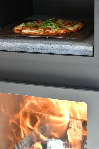 ガンガン焚いても料理ができるのは、クッキングストーブならではの楽しさだ。オーブン室の底に敷いてある石がオーブン室の温度を均一かつ、安定して保つ働きをしていることを感じた。