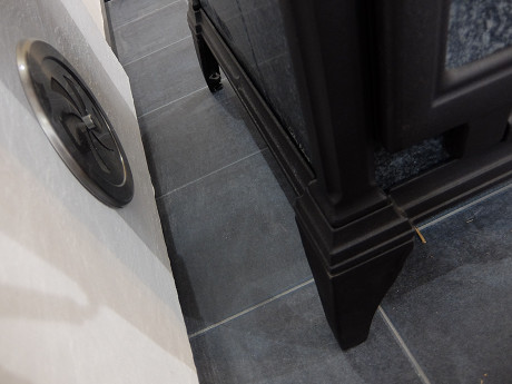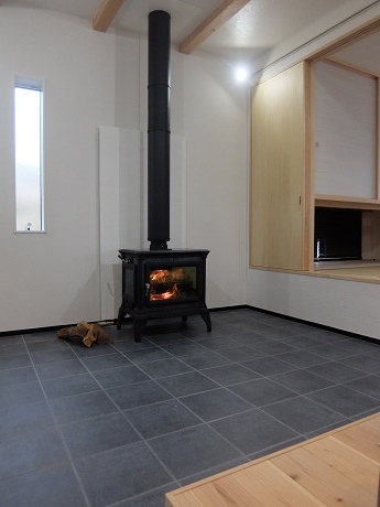 主役である薪ストーブ本体が、ソープストーンで素材の味わい、特徴が個性的で主張するタイプなので、よくあるレンガなどの炉壁ではお互いが主張し合ってチグハグになってしまう。よほど素材同士の組み合わせを吟味するか、主張しないタイプの炉壁が相性が良い。