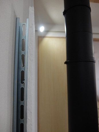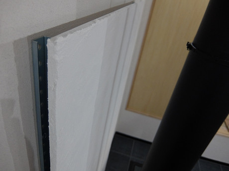 (真横から)間柱に鉄骨を打ち付けて空気層を確保して、鉄骨にケイカル板を打ち付けて、漆喰を塗る