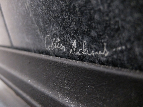 背面の下側に製作者のサインが彫り込まれている