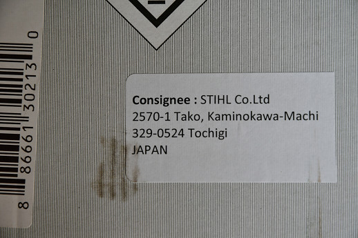 日本のSTIHLの正規品であることが、この荷札からも判る