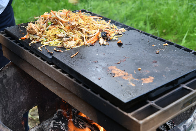 GWのイベントの時に、富士宮から参加された、ゆで落花生さんからお土産に富士宮名産の焼きそばをいただいた。 富士宮のお土産の焼きそば 富士山の溶岩プレートと焚き火で、慣れた手つきで、安定安心の、焼きそば作り 完成♪ 朝食で焼きそばを食べたのは人生初かもしれない(美味しかった) 前日から朝食用に、用意しておいたサンドイッチ
