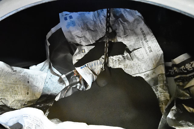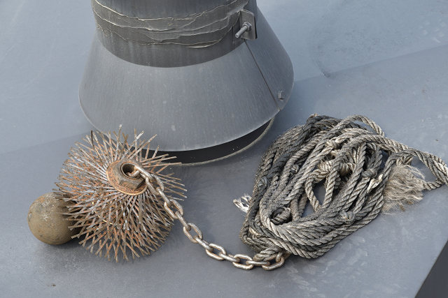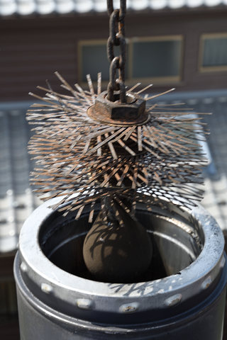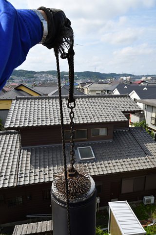 炉内まで錘が到達して、煙突の中が綺麗になる