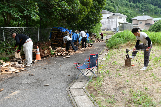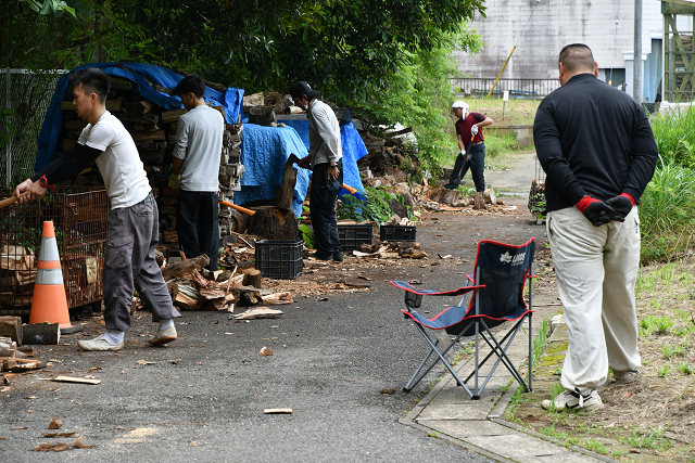 多くのスタッフが入れ替わり立ち替わり作業しているので、みるみるうちに巨大薪棚が満載になった。「とりあえずお試し」で手ぶらできて、これまで一度も斧を持ったこともない素人さんでも1立米作って1万円稼いでいってくれて「これだけできるのか~」と、ちょっと驚いた。本気のチェーンソー持参組は一日で2万円以上余裕で稼いでいる。