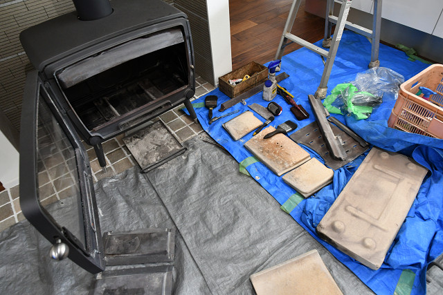 パーツを取り外して、炉内を清掃&錆び止め