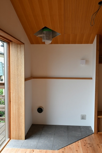 下げると、灰や木屑がフローリング側にこなくて良いかもしれないですねぇ。施工したら、見せてもらいたいです。