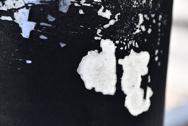 この状態でスプレーしても、一時的に黒く見えて目立たなくなるけど、数か月でまたパラパラと剥離して同じことになる。努力とスプレー代は無駄になるので、あまりお勧めしない。
