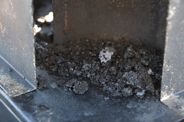 整流板の中も、引火性のフレーク状のタール、煤が積もっていた