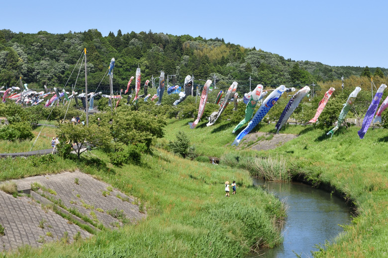 鯉のぼりが泳ぐ川を見ながら帰ってきた