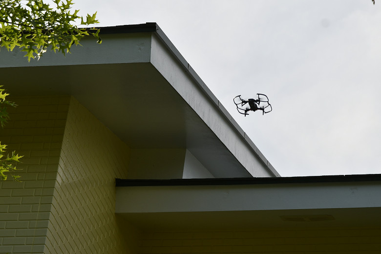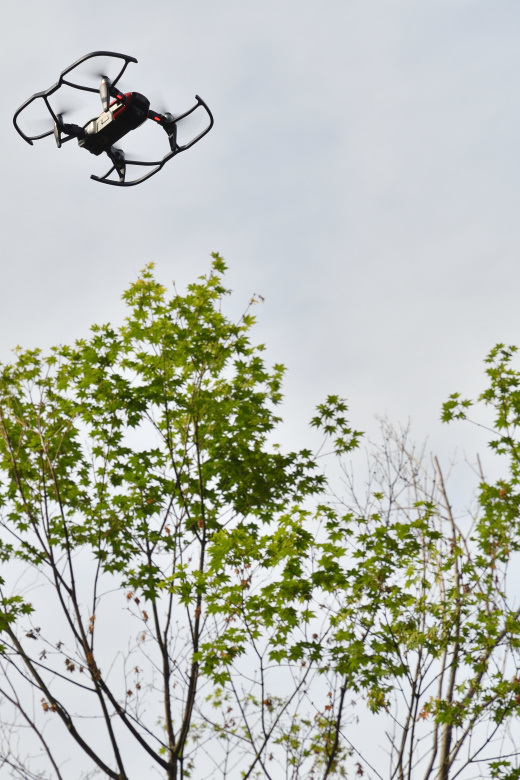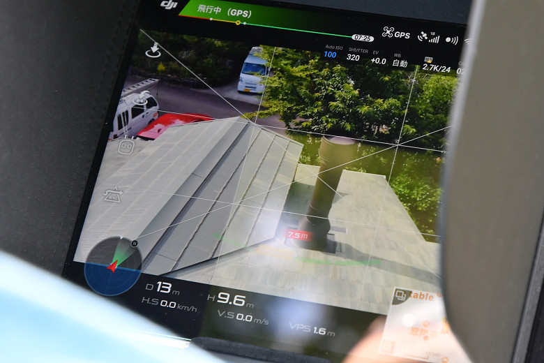 屋根の上に登ることなく煙突トップの状態のクロースアップが撮影できると、かなり便利だ。煤の付着状況とか、他社施工で金網の有無が判らない時に、ドローンで確認して、使える状況だと判断ができたら下からのドリルで回転式のブラシで煙突掃除というのが理想的な使い方だろう。その際に、煙突トップからの煤の飛散状況なども空撮でクロースアップで撮影できたら、面白いと思った。