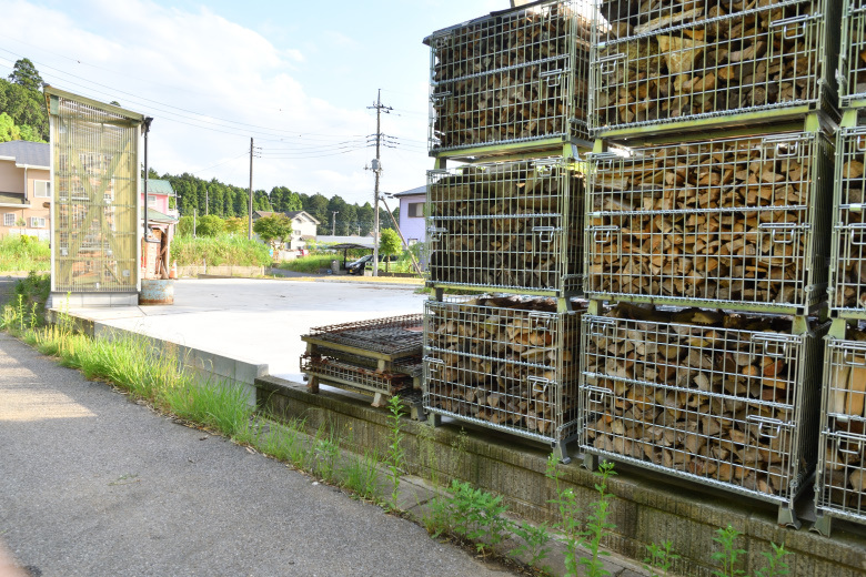薪小屋と空きメッシュパレットの間にスペースを確保
