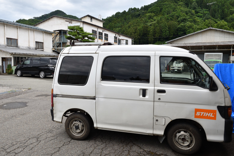 クルマを停めた奥には大きな工場があった