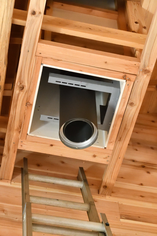 室内側の煙突を繋いでいき、無事に設置完了